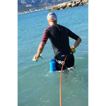 Elastična vlečna vrv - dolžina 2,5m. 2 nastavljiva pasova s 3 "D-obročki" na pas vam omogočata obešanje vaših dodatkov (podloge / vlečna boja). Oranžna vrv za vidljivost in varnost v vodi. Popolna za vaše Swimrun...